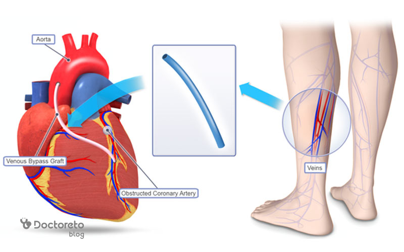 - برداشت رگ سالم از پا، قفسه سینه یا دست برای پیوند