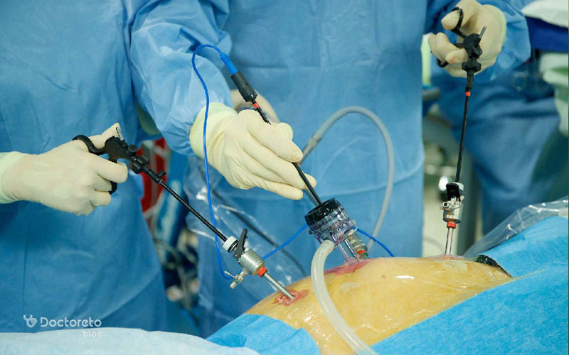 - لاپاروسکوپی که روشی کم تهاجمی است و در آن به جای یک برش بزرگ، چند برش کوچک ایجاد میشود. از طریق این برشها، جراح ابزارهای مخصوصی از جمله لاپاراسکوپ را وارد بدن میکند. با کمک لاپاروسکوپ (لولهای باریک و انعطافپذیر با نور و دوربین در انتها) تصاویر دقیقی از اندامهای داخلی روی مانیتور نمایش داده میشود. جراح با دید حاصل از لاپاروسکوپ، جراحی را انجام میدهد و بافتها و اندامهای مربوطه را خارج میکند.
